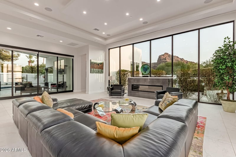 Listing details for 6321 Camelback Manor Dr, Paradise Valley, AZ 85253 : CORNER LOT, CAMELBACK VIEWS, RESORT-STYLE BACKYARD & 4-CAR GARAGE!~ A striking, fully fenced residence positioned on a premium corner lot with breathtaking Camelback Mountain views, designed to deliver space, functionality, and seamless indoor-outdoor living. The property offers exceptional parking and storage capacity, including an RV gate, paved parking area, and a true 4-car garage ideal for vehicles, recreational toys, or hobby use. The interior showcases an open-concept floor plan anchored by panoramic windows and a 4-panel sliding pocket door system, creating a natural flow between living spaces and the outdoors. Architectural details include tray ceilings, recessed lighting, neutral tile and paint finishes, fire sprinklers, and pre-wired surround sound, all contributing to refined yet comfortable atmosphere throughout the home.