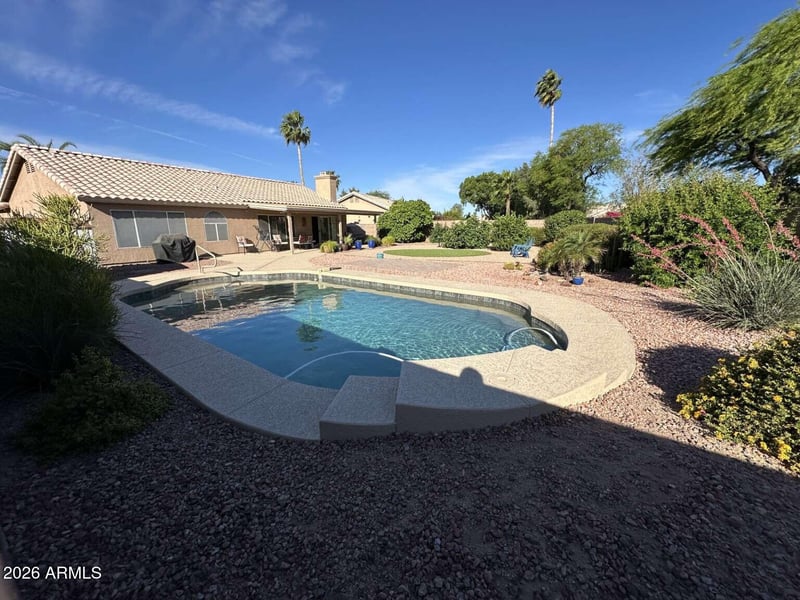 Listing details for 6324 Irma Ln, Glendale, AZ 85308 : Remodeled 3/2 on a HUGE lot with RV gate, owned solar & pool! Tons of recent upgrades. Back yard has mature fruit trees, artificial grass, paver seating area & 2 fully irrigated gardens. Large covered patio has speakers, mister system & sun shades to enjoy the mountain views. Pebble-tec pool w/ waterfall has a recent pump (2 yrs), pool tiles cleaned & cool decking resurfaced (2 weeks). Oversized AC only 7 years old. Inside, kitchen & both baths have painted cabinets, granite counters, new sinks/faucets & brand new (unused!) tile shower in the Primary Bath. Kitchen has Stainless Steel appliances & newer washer/dryer convey with acceptable offer. Flooring includes gorgeous 12 x 24 tile t/o with grout just cleaned & 2 year old carpet in bedrooms. Pride of ownership shows EVERYWHERE.