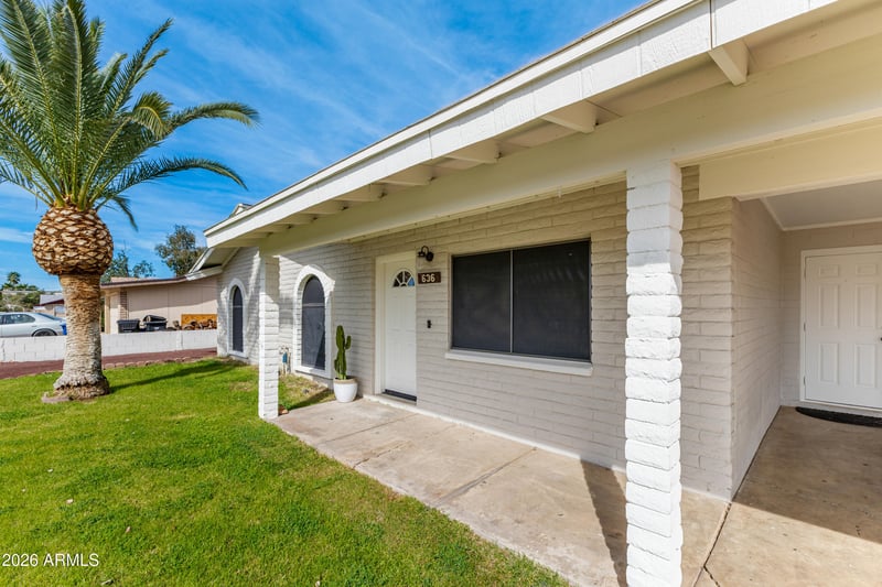 Listing details for 636 Knoll St, Mesa, AZ 85203 : This beautifully upgraded 3-bedroom, 2-bath Mesa residence is truly a must-see. Designed for both comfort and style, the home showcases a spacious open-concept floor plan and an expansive backyard retreat featuring a sparkling private pool.