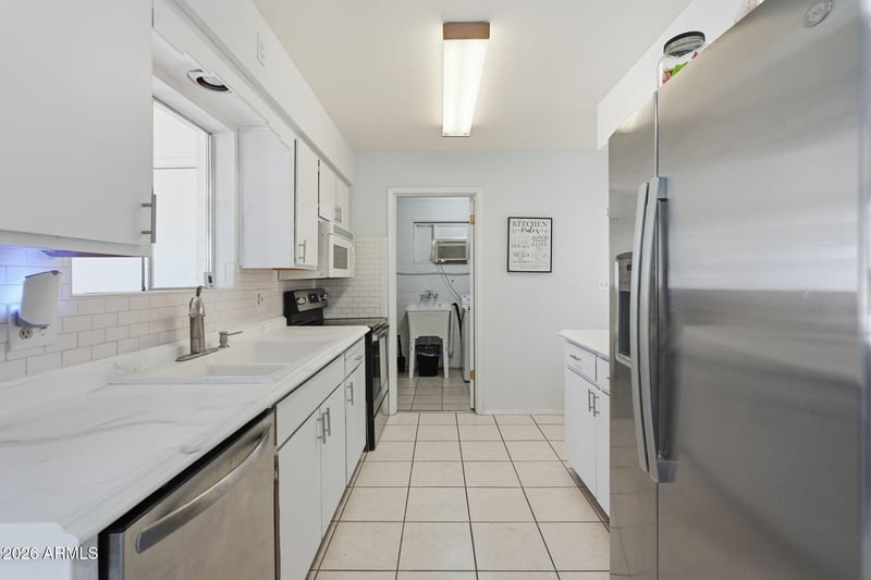 Listing details for 639 57th Pl, Mesa, AZ 85205 : This thoughtfully updated 55 plus community home offers flexibility, comfort, and plenty of charm! New vinyl plank flooring and fresh interior paint give the space a clean, modern feel, while the Arizona room adds versatility and can easily function as a third bedroom, hobby space, or quiet retreat. A utility room provides even more potential and could be converted into a second bathroom if desired. The kitchen feels practical and refreshed with new stainless steel appliances, a pantry, and smart storage that keeps everything within reach. The laundry room includes a utility sink and shelving, making everyday tasks simple and organized. In the bathroom, new hardware and a new sink add a subtle but polished update. Out front, a rose garden sets a welcoming tone, complete with a charming swing that invites slow mornings and evening conversations. The covered patio offers a shaded place to unwind, while additional storage in the carport keeps things tidy. RV parking with water and sewer hookups adds rare convenience and flexibility. An optional HOA is available for those who want to take advantage of pickleball and tennis courts, along with a heated pool and spa, creating a social and active lifestyle when you choose it. This home blends comfort, choice, and character in a way that feels easy to live in and even easier to love