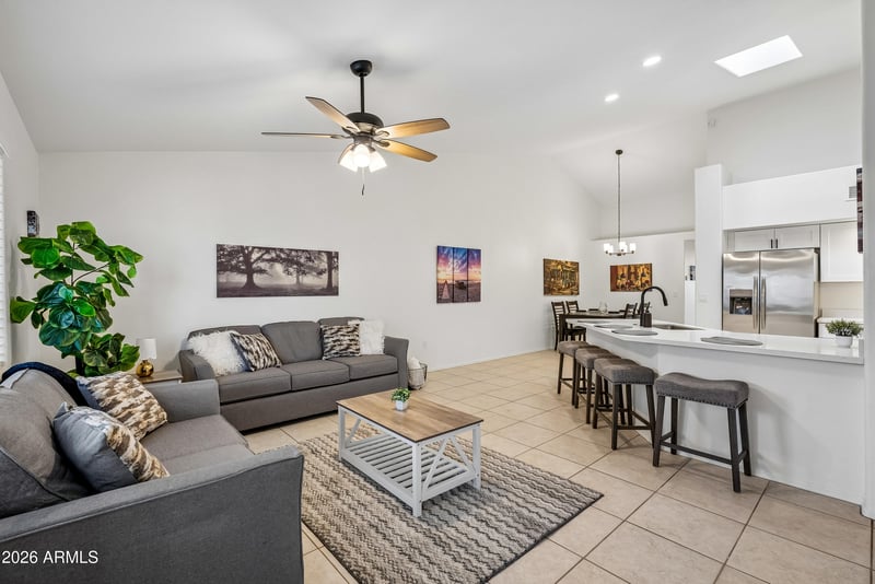 Listing details for 64 63rd St #43, Mesa, AZ 85205 : Remodeled townhome in quiet east Mesa neighborhood! Open kitchen has been completely redone with new cabinets, granite countertops, and plumbing fixtures. Fresh coat of neutral paint throughout. Both bathrooms have new fixtures and vanities with granite countertops. New carpet in bedrooms. Garage floor has a new epoxy finish. Hard to find a spotless remodel at this price point!
