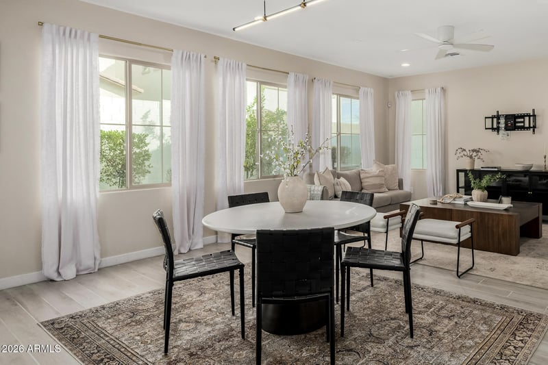 Listing details for 6413 17th St, Phoenix, AZ 85016 : Modern gem in the heart of Madison Square, offering the best floor plan and the most upgrades in the community. Built in 2022, this 5-bedroom, 3-bath home delivers spacious, thoughtfully designed living in one of Phoenix's most sought-after neighborhoods. The open-concept layout is a true standout with seamless flow between the kitchen, dining, and living areas. The kitchen is exceptionally well equipped with a walk-in pantry, GE refrigerator, Whirlpool gas oven and dishwasher, KitchenAid built-in oven and microwave, and ample storage. This home also includes a tankless gas water heater, Lennox HVAC, whole-home water treatment system, and water softener for comfort and efficiency. The main level features a bedroom and full bathroom, ideal for guests, multigenerational living, or a home office. Upstairs you'll find the primary suite with an oversized walk-in closet that surpasses others in the community, along with three additional bedrooms, a full laundry room, and included LG washer and dryer on pedestals. Remote-controlled blackout shades add both convenience and privacy. Outdoor living is equally impressive with pavers, low-maintenance turf, mature citrus trees, a gas grill, outdoor TV and sound system, and a doggie door. The home also includes a level one Tesla charger. Enjoy peaceful views of the grassy park across the street with no freeway noise. Ideally located just minutes from Madison Camelview Elementary, Madison Heights Elementary, Madison No. 1 Middle School, All Saints' Episcopal Day School, Saint Thomas the Apostle School, Xavier College Preparatory, and Brophy College Preparatory. A rare opportunity to own a highly upgraded, move-in-ready home in a prime central Phoenix location.