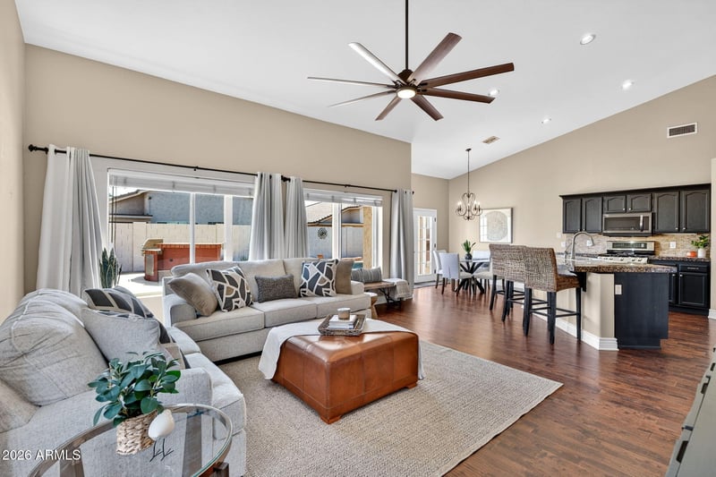Step outside to your own backyard oasis--complete with a sparkling pool, built-in BBQ, & a cozy fireplace with seating area--ideal for entertaining or relaxing under the Arizona sky.
