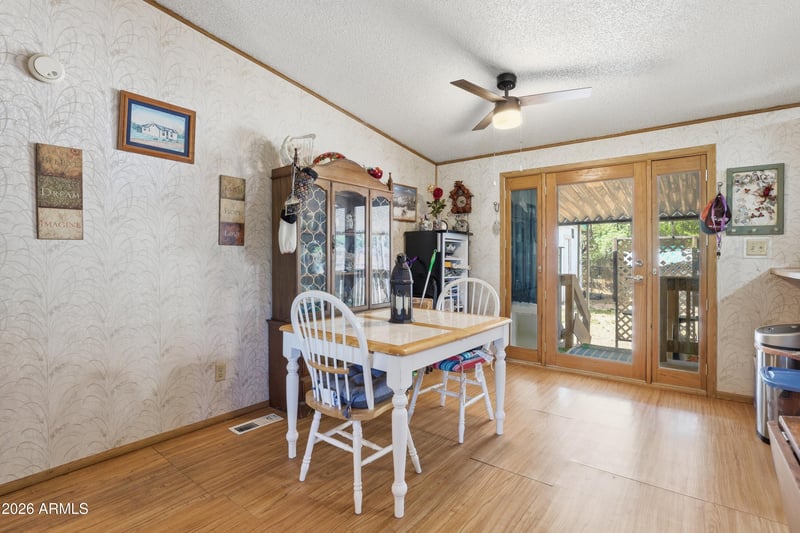Listing details for 650 Deer Creek Dr, Payson, AZ 85541 : 'Experience the ultimate Rim Country lifestyle! Located in the tranquil Deer Creek community, this 3-bedroom, 2-bath Palm Harbor home sits on a premier .30-acre lot with stunning mountain views. Your pets and kids will love the freedom of the fully fenced front and back yards, and the nearby seasonal creek offers a peaceful escape just a short hike away. All the heavy lifting is done with a brand-new roof (2024), new siding (2023), and a modern HVAC (2018). With a 'blank canvas' yard ready for your garden and a pristine, never-used fireplace inside, this home is move-in ready and full of potential. Just a short drive to nearby Roosevelt Lake. '