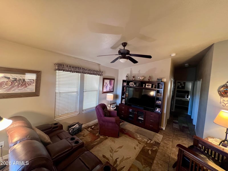 Listing details for 650 Hawes Rd #4004, Mesa, AZ 85207 : Location, location! This well-maintained 2-bedroom, 2-bath home features an open floor plan & sits directly across from the park, pool, & fitness center. Vaulted ceilings, tile throughout, and carpet in the bedrooms. The spacious primary suite offers private patio access, a walk-in closet, & an en-suite bath with double sinks, & walk-in shower. The guest bedroom includes a Murphy bed & office desk. Low-maintenance exterior with pavers surrounding the home, plus an epoxy driveway & double door storage area, golf cart parking, covered back patio, & spacious front patio. Located in the 55+ Viewpoint community with access to 2 golf courses (18-hole and 9-hole), 4 pools, spas, tennis, pickleball, softball fields, fitness centers, pro shop, Fat Willie's restaurant, and over 200+ activities