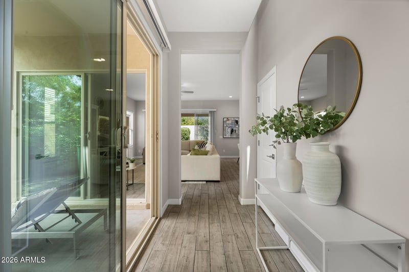 Listing details for 6504 Rose Marie Ln, Phoenix, AZ 85054 : Located on a premium corner lot in the desirable gated Paradise Ridge community, this home sits in one of North Phoenix's most convenient locations. Enjoy Scottsdale adjacency living while paying Phoenix taxes. With three bedrooms, a versatile loft, and multiple outdoor living spaces, the home combines thoughtful design with everyday functionality.The corner lot provides additional privacy and allows natural sunlight to pour into the home from multiple directions, creating a warm and welcoming atmosphere throughout. Inside, the open floor plan connects the kitchen seamlessly to the main family and living area, making the space ideal for both entertaining and everyday living. The kitchen offers generous counter space and cabinetry while keeping the cook connected to the heart of the home. Outdoor living is just as inviting. A charming side patio features a small herb garden, perfect for morning coffee or quiet evenings. The backyard has been upgraded with turf and added landscaping, creating a low maintenance outdoor space that is ideal for relaxing, entertaining, or play. Upstairs, the spacious primary suite serves as a private retreat, complete with a large bathroom and walk in closet. Two additional bedrooms are nicely sized and filled with natural light, while the secondary bathroom offers dual vanities for added convenience. The loft provides flexible space that can easily function as a home office, playroom, or media area. The laundry room is conveniently located upstairs with brand new Samsung washer & dryer. The location is truly exceptional. Right across from Mayo Clinic, premier shopping, and popular restaurants like The Henry and Buck and Rider, everything you need is close by and within walking distance to. Lifetime Fitness is around the corner, and outdoor enthusiasts will appreciate easy access to trails that connect to Reach 11 for running, biking, or walking. The community also offers a pool and playground area, making it a great setting for both families and young professionals. Peaceful yet connected, this home offers a private oasis right in the middle of everything North Phoenix has to offer.