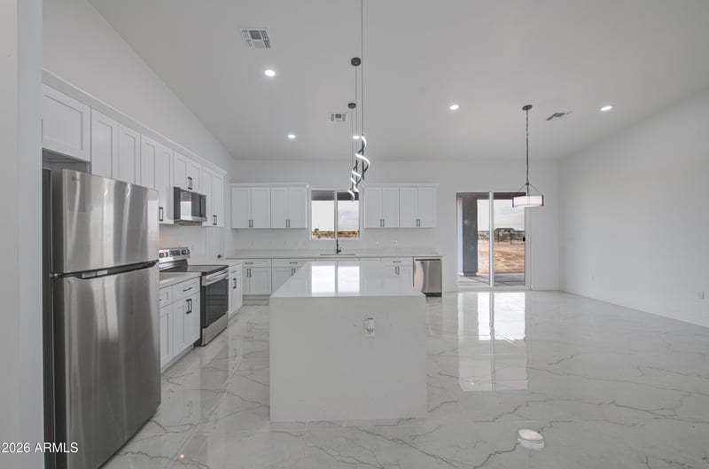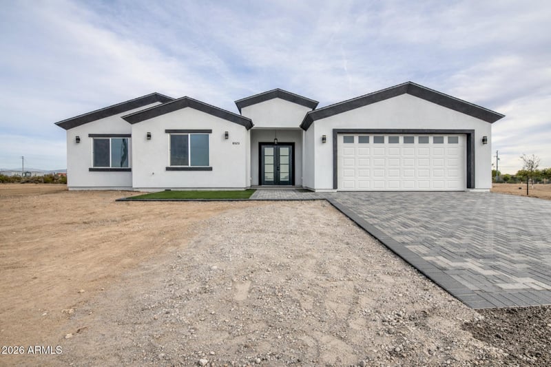 Listing details for 6523 333rd Ave, Tonopah, AZ 85354 : Brand new construction in Tonopah with NO HOA! This beautiful 4-bed, 2.5-bath home offers 2,387 sq ft of open-concept living space on a full acre lot. Enjoy vaulted ceilings, a split floor plan for added privacy, and modern finishes throughout. The kitchen features granite countertops and flows seamlessly into the spacious living and dining areas. The primary suite is thoughtfully separated from the guest bedrooms. The property features a shared well with only one other home—an ideal setup for acreage living. A 2-car garage provides ample room for parking and storage. Conveniently located near 331st Ave with easy access to the main road.