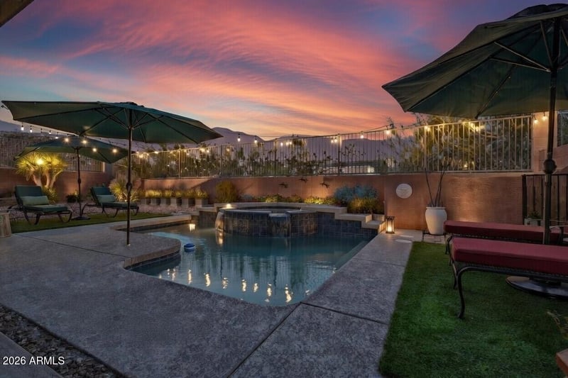 Listing details for 6530 Bent Tree Dr, Phoenix, AZ 85083 : Nestled in the mountains of North Phoenix - 6530 W Bent Tree showcases the purest form of Zen and Serenity in The Preserve at Boulder Mountain. This 4 Bedroom 3 Bathroom gem is situated perfectly on a private corner lot; surrounded by natures gifts to Arizona. In the picturesque backyard, buyers will find a peaceful oasis built for year round enjoyment. A heated pool, waterfall, spa, mister system, covered patio makes you feel like you are in a desert dream under the stars. Inside, the floor plan flows effortlessly from the great room into the wide open kitchen featuring granite on the island + extended counters, gas range, and KitchenAid stainless steel appliances. Unwind in the adjacent cozy living room with a gas fireplace with easy access to the backyard. Owned Solar +2 NEW AC UNITS Master bedroom is the cherry on top with private access to the pool, dual vanities, tile shower and walk-in closet with a window providing natural light. Guest room with ensuite bathroom. Built in bookcase in the Den. -Two new AC units -New Water Heater -New Pool Motor -Wireless Irrigation -Smart Switches