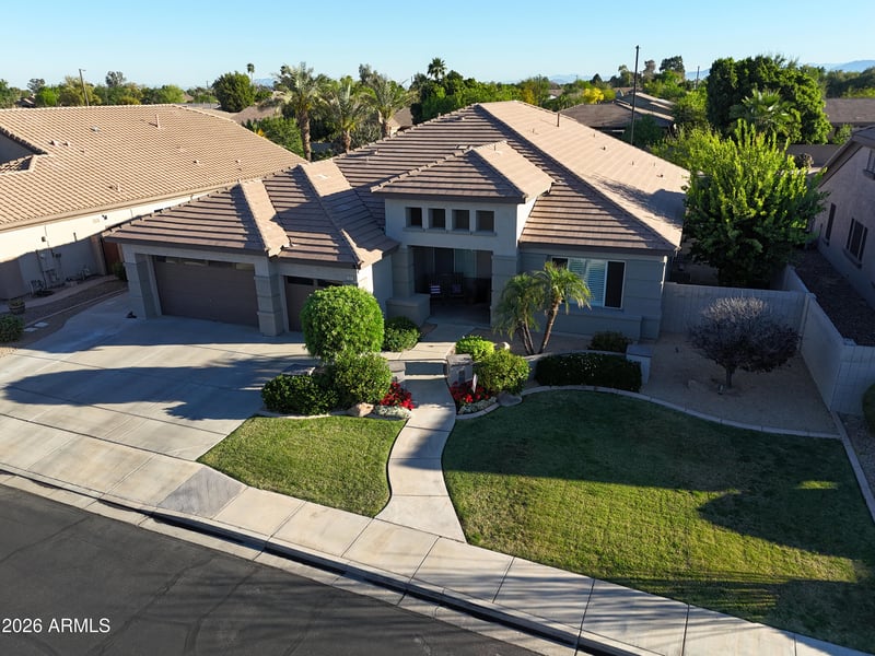 Listing details for 654 Hampton Ct, Gilbert, AZ 85295 : Located in the gated community of Jake's Ranch in Gilbert, this beautifully upgraded basement home offers space, comfort, and a long list of major improvements throughout. One of the biggest recent upgrades includes a brand-new roof and a new HVAC unit, giving buyers peace of mind for years to come. Inside, the home showcases upgraded flooring throughout, plantation shutters, updated lighting fixtures, and extensive can lighting, creating a bright and modern feel in every room.The kitchen has been thoughtfully enhanced with stunning Taj Mahal quartzite countertops, extended into the primary bathroom for a cohesive luxury touch. Additional kitchen upgrades include a double oven, stylish backsplash, built-in beverage area with mini fridge, under- and above-cabinet lighting, and upgraded counter lighting, all centered around a large island that opens to the bright family room.. The primary suite offers a true retreat, highlighted by Taj Mahal countertops, a fully remodeled walk-in shower, freestanding soaking tub, and brand-new Toto toilets installed in every bathroom. The main floor features a split floor plan with the spacious owner's suite, three additional bedrooms, and two full bathrooms. An extra-wide staircase leads to the finished basement, offering two more bedrooms, a full bathroom, plenty of storage, and a large bonus room ideal for a theater, home gym, or game room. Step outside to your private backyard oasis, complete with a pebble finish pool, covered patio, and built-in grill with bar counter and pavers, perfect for hosting gatherings. The home also includes new custom garage cabinets, adding valuable storage and organization. Beyond the home itself, the location is hard to beat. Jake's Ranch is ideally situated just minutes from the Loop 202 freeway, making commuting around the Valley easy. You're also close to the shopping, dining, and entertainment at SanTan Village, along with the vibrant restaurant and nightlife scenes in Downtown Gilbert and Downtown Chandler. With everything from parks and restaurants to major retail and freeway access nearby, this home offers both comfort and convenience in one of Gilbert's most desirable areas.