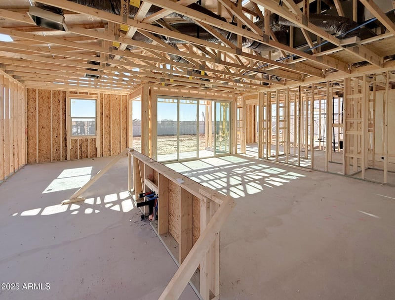 Listing details for 6543 Fiddleneck Way, San Tan Valley, AZ 85140 : Welcome to the Violet at Skyline—a thoughtfully crafted 1,567 sq ft single-story home featuring 3 bedrooms, 2 bathrooms, and a 2-car garage with Desert Modern charm. Bright and open, the layout shines with designer finishes from the Timeless Collection: crisp white cabinetry, quartz countertops, a bold herringbone backsplash, wood-look tile flooring, and sleek fixtures throughout. A 12' sliding glass door fills the great room with light and extends your living space outdoors. This move-in ready home includes blinds, fridge, washer, dryer, and a soft water loop. Enjoy Skyline's resort-style amenities: pool, splash pad, fitness center, pickleball, volleyball, basketball, tot lots, trails, and a community clubhouse with kitchen!