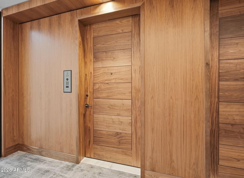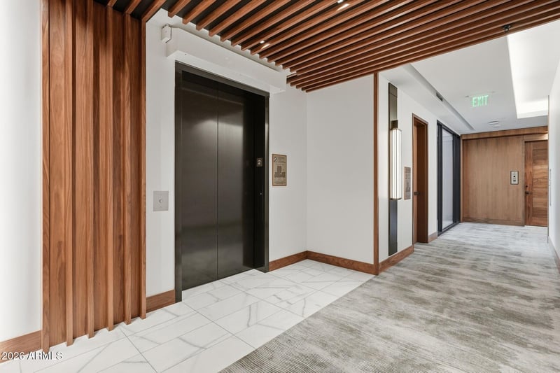 Listing details for 6587 Palmeraie Blvd #2041, Paradise Valley, AZ 85253 : Positioned on a top-floor corner residence, this home captures sweeping Camelback Mountain and Mummy Mountain views, overlooking the pool below, where the soft sound of fountains carries through. From the moment you arrive, the opulence is undeniable. Marble floors throughout set a grand, and composed tone, carrying a sense of scale and quiet splendor throughout. As you move into the great room, natural light pours through a full wall of windows, with electronic collapsible glass doors opening to an expansive balcony, blurring the line between interior and exterior, and framing the views in a way that feels intentional. The kitchen unfolds seamlessly from the living space, anchored by an oversized waterfall island, panel refrigerator, a wine fridge, a WOLF gas cooktop, vent hood, double wall ovens, and a built-in microwave create a space that is both highly functional and visually composed, whether you're cooking or opting for in-residence dining. A den with wall-to-wall integrated storage offers an ideal work setting. The guest suite is privately positioned with its own ensuite, while a powder room wrapped in bespoke patterned tile adds a moment of design contrast. A well-appointed laundry room with built-in storage and utility sink supports day-to-day living without compromise. The primary suite is set apart in quiet grandeur, with floor-to-ceiling windows capturing both Camelback and Mummy Mountains and pool views, along with direct access to the balcony. The ensuite bath takes on a monolithic presence, with marble surfaces extending from floor to ceiling, creating a space that feels more like a private wellness retreat than a traditional bath. A freestanding soaking tub, dual vanities with integrated LED mirrors and built-in television, and steam shower, complete the experience. Additional features include secure and underground parking (for up to four cars), separate secure and temperature-controlled storage area, and Crestron and Lutron automation that orchestrates both lighting and audio temperature, as well as the integrated electronic shades throughout and all built-in speakers extending throughout the residence. Located within the Ritz-Carlton Palmeraie, this residence offers a level of service and lifestyle that extends well beyond the home itself. Residents enjoy access to the Ritz-Carlton concierge, secured underground parking, a private clubhouse, pool, and fitness center. With the upcoming completion of the hotel, ownership will expand to include full access to a 400-foot resort-style pool, along with dedicated adult and family pools, an expansive spa and wellness retreat with indoor and outdoor treatment areas, a state-of-the-art fitness center, and tranquil meditation gardens. Dining experiences will range from signature offerings such as Mott 32 to more casual settings, all complemented by in-residence services including pre-arrival stocking, private chef and catering services, and curated event planning. Lush courtyards, walking paths, and over 20,000 square feet of indoor and outdoor event space are paired with 24-hour concierge and valet, creating a fully serviced, resort-caliber environment. This is a home where architecture, service, and setting are fully aligned, offering a lock-and-leave lifestyle without sacrificing presence, privacy, or experience.