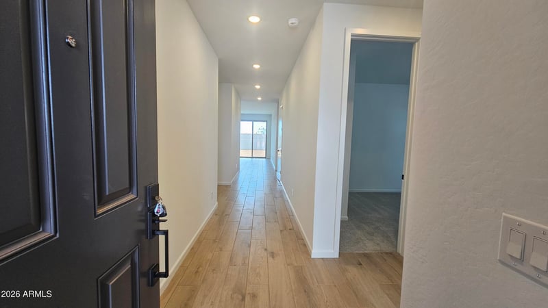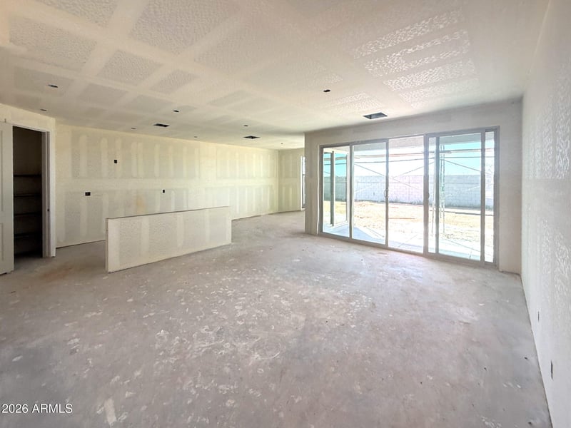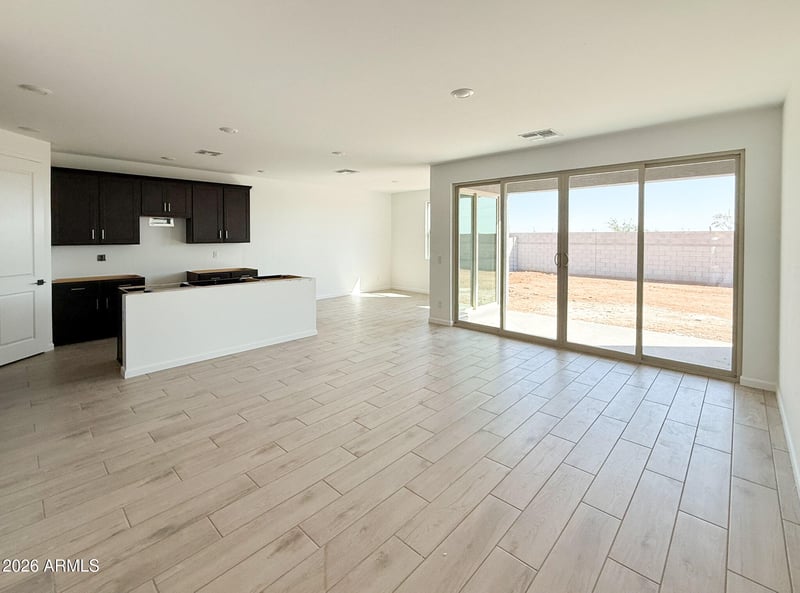 Listing details for 6589 Fiddleneck Way, San Tan Valley, AZ 85140 : Welcome to the Larkspur at Skyline! This 1,950 sq ft single-story home features 3 bedrooms, 2 bathrooms, a flexible den, and a 2-car garage with a stylish Desert Modern-style exterior. The Oxford Collection offers a modern look with espresso cabinetry, quartz countertops, gold cabinet pulls, and wood-look tile in all main areas. A 12' sliding glass door brings in natural light and opens to the backyard for seamless indoor-outdoor living. Enjoy 8' interior doors, blinds, stainless steel appliances, refrigerator, washer, dryer, and a soft water loop. Located in Skyline with amenities including a pool, splash pad, pickleball, basketball, volleyball, walking trails, fitness center, tot lots, and a community clubhouse with kitchen. Enjoy the good life!