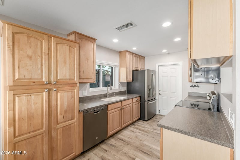 Listing details for 6613 Mckemy St, Tempe, AZ 85283 : Fully renovated and truly move-in ready, this South Tempe single-level pool home offers the updates buyers want without the renovation risk. Located in desirable Tempe Royal Estates, with no HOA, this 3-bedroom, 2-bathroom home sits on an oversized 8,128-square-foot lot and features durable block construction designed for our Arizona climate. The home has been thoughtfully updated throughout. Both bathrooms were completely remodeled with new showers, vanities, countertops, lighting, fans, and fixtures. Wood laminate flooring runs throughout the entire home; the living room floor was leveled to create a seamless modern layout, and large baseboards and designer interior and exterior paint give the home a clean, updated feel. All electrical receptacles have been replaced, adding an extra layer of confidence for today's buyer. The open living and dining areas flow naturally into the kitchen and out to the covered patio, creating ideal indoor and outdoor living spaces. The private backyard features a massive pool, perfect for relaxing, entertaining, and enjoying Arizona's sunshine. The oversized lot offers space and flexibility rarely found in newer high-density communities, and the RV gate with additional parking adds practical versatility. This home is located within the highly regarded Kyrene School District and Tempe Union High School District. Kyrene is known for strong academic performance and specialized programs, including an elementary-level STEM and computer science-focused curriculum, making this location especially appealing to buyers seeking long-term value and educational opportunity. Positioned in the heart of 85283, this home offers quick access to I-10 and US-60, ASU Research Park, the Chandler tech corridor, and major employers such as Intel, Honeywell, State Farm, and other East Valley tech and financial hubs. The neighborhood is minutes from Kiwanis Park, with 125 acres of green space, a lake, a recreation center, a wave pool, tennis courts, and miles of biking paths, supporting the active South Tempe lifestyle that attracts buyers. In a market where buyers prioritize renovated single-family homes, larger lots, no HOA restrictions, and proximity to employment and recreation, this property offers a rare combination of updates, location, and lifestyle that checks all the boxes.