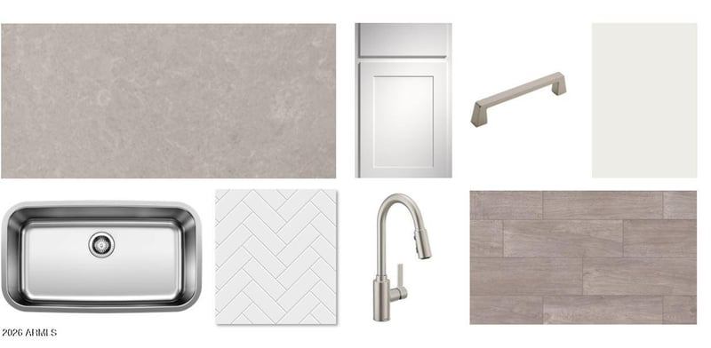 Listing details for 6617 Fiddleneck Way, San Tan Valley, AZ 85143 : Step inside the Lavender floorplan, a 2,222 sq. ft. single-story home designed for comfortable everyday living. Two secondary bedrooms are located at the front of the home and share a full bath, while a private retreat on the opposite side offers an additional bedroom, bathroom, and flexible living space. The kitchen features the Timeless Collection with white cabinetry, soft grey clouded quartz countertops, a white herringbone tile backsplash, and gunmetal hardware. Wood-look tile flooring, 8-foot interior doors, and a 12-foot sliding glass door enhance the open feel. Move-in ready package includes refrigerator, washer, dryer, window blinds, and soft water loop. Enjoy Skyline amenities including pools, sports courts, walking paths, fitness center, and clubhouse.