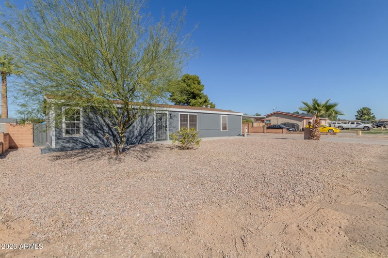 Listing details for 6622 Mary Jane Ln, Glendale, AZ 85306 : Welcome to this upgraded 3-bedroom 2-bath manufactured home in Granada Estates, ideally located near sports fields, dining, and shopping. The interior features a bright, open layout with vaulted ceilings, neutral tones, and luxury vinyl flooring throughout. The kitchen includes quartz countertops, stainless steel appliances, and ample cabinetry. The primary suite offers a walk-in closet and a full ensuite with dual sinks.