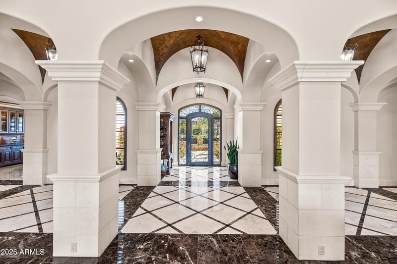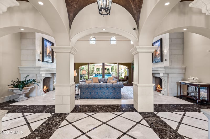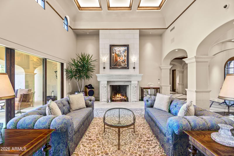 Listing details for 6636 Lost Dutchman Dr, Paradise Valley, AZ 85253 : Premier 1-acre lot with breathtaking Camelback Mountain views. Experience elevated desert living in this gated Paradise Valley estate, where architectural details abound: soaring ceilings, arched entryways, multiple gas fireplaces, and stunning ceiling treatments featuring skylights, wood paneling, and exposed beams. The main residence offers an expansive open-concept layout with a grand great room, formal dining area, and a private study with custom built-ins. Entertain effortlessly with a chef's kitchen, wet bar, wine cellar, and game room, or unwind in the dedicated exercise room complete with sauna. A detached casita provides exceptional flexibility and privacy, featuring its own living room with fireplace, full kitchen, and bedroom with en-suite bath-ideal for guests or extended stay. Step outside to an extraordinary backyard retreat showcasing sweeping mountain views, tranquil fountains, and a custom pool and spa enhanced by dramatic fire and water features. Enjoy Arizona living at its finest with a ramada, covered patio, and private putting green-perfect for year-round relaxation and entertaining. Additional highlights include a 4-car garage and a premier location just minutes from world-class resorts, spas, golf, hiking, fine dining, and luxury shopping.