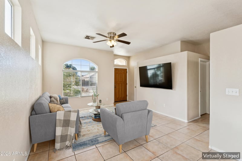 The thoughtfully designed floor plan features a spacious master bedroom with French doors that open directly to the backyard. Step outside to your private pool, ideal for Arizona summers, entertaining, or relaxing evenings at home.