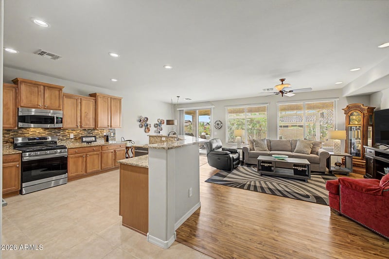 Listing details for 6709 Willow Way, Florence, AZ 85132 : LIVING THE ARIZONA DREAM! This beautiful Providence awaits you, offering comfort, style & move-in-ready convenience. The kitchen is thoughtfully designed w/ tile flooring, granite counters, stylish backsplash & convenient pull-out shelving--perfect for both everyday living & entertaining. The great room showcases durable LVP flooring creating a bright & inviting space. The primary suite features a charming bay window, adding both space & natural light. The en-suite bath includes a double vanity w/ a dedicated makeup vanity, glass-enclosed shower & spacious walk-in closet. The 2-1/2 car garage is a standout w/ epoxy flooring & built-in cabinetry, offering excellent storage & functionality. Situated on a corner lot w/ covered patio, pergola & extended pavers. Solar for savings!! Furnished! Sun City Anthem at Merrill Ranch offers a 48,000 SF recreation center w/ craft rooms for quilting, pottery, glass works, jewelry & crafts, spacious ballroom w/ stage for dancing, theatrical productions, concerts & more. PLUS full gym, work out rooms, indoor lap pool & spa, walking track, cafe area, card rooms, poker tables, pool table, ping pong table, business center, class room for interesting seminars! Troon Poston Butte Golf Course is one of the nicest in the area. Sun City offers Pickleball, Tennis, Bocce Ball, Horseshoes, Shuffleboard, clubs for all activities.......LIVE WHERE THE SURROUNDINGS DELIGHT, INSPIRE & CHALLENGE YOU!