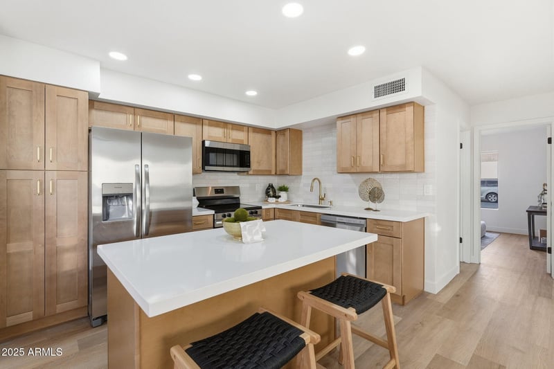Listing details for 6717 Aire Libre Ave, Peoria, AZ 85382 : STUNNING REMODEL ALERT!! DESIGNER GRADE! LUXURY FINISHES! WOW! NEW! NEW! NEW! 3 bedrooms, 2 bathrooms and ALL the luxury finishes at a price point you can afford! No detail missed on this one. NEW custom metal stair rail with beautiful luxury vinyl plank stair risers. NEW interior modern paint scheme, all new designer kitchen with soft close cabinetry, brand new luxury vinyl plank flooring, new high baseboards, all new fans, faucets, fixtures + so much more. Accent walls galore! This is the one! A true entertainer's house. WOW! Always priced to sell, show today before it's gone. Detached 2-car garage and spacious yard, this community has a pool.