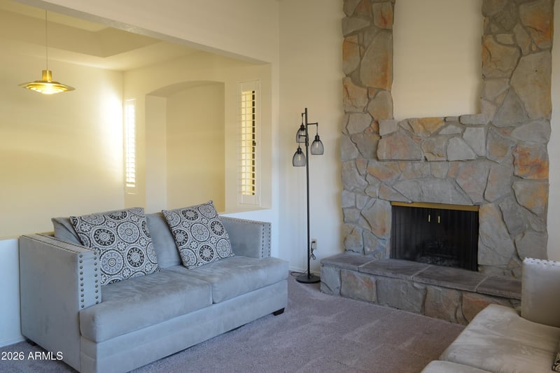 Listing details for 6719 Kerry Ln, Glendale, AZ 85308 : Comfort & Convenience! Move-in ready 3-bedroom, 2-bath home in sought-after Arrowhead Ranch with over $20K in upgrades & a sparkling private pool. This split floor plan offers multiple living spaces including spacious formal living, family room & dedicated dining area, all highlighted by soaring ceilings, plantation shutters, new carpeting in select rooms & a striking stone fireplace. The kitchen features rich wood cabinetry, stainless steel appliances including double wall oven & a peninsula with breakfast bar seating. The private primary suite offers backyard access, walk-in closet with built-in storage & an ensuite with dual sinks & tub/shower combo. Two additional bedrooms are generously sized, while the secondary bath provides convenient access to the covered patio & pool for seamless indoor-outdoor living. The low-maintenance backyard retreat with stylish pavers, covered patio, refreshing pool & mature citrus trees complete the property. Additional highlights include a new 5-ton AC unit, separate laundry room & 2-car garage, plus a community featuring golf courses, lakes, playgrounds, parks & more. This Arrowhead Ranch gem delivers comfort, flexibility & Arizona lifestyle at its best.