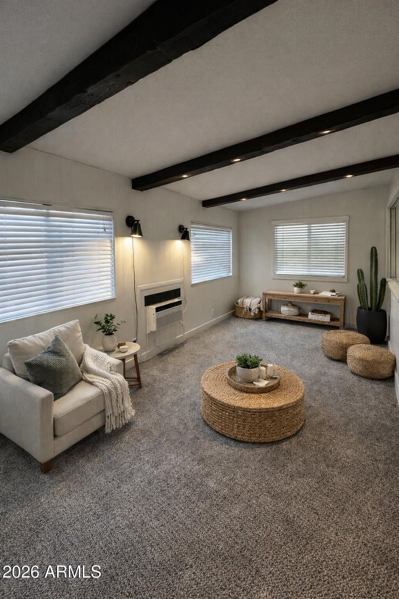 Listing details for 6740 Adobe St, Mesa, AZ 85205 : This beautiful home is located in the desirable Dreamland Villa 55+ community and has been thoughtfully updated for modern, low-maintenance living. Complete remodel! To include new wood-look flooring, updated cabinetry, modern appliances, and a brand-new A/C unit for reliable year-round comfort.