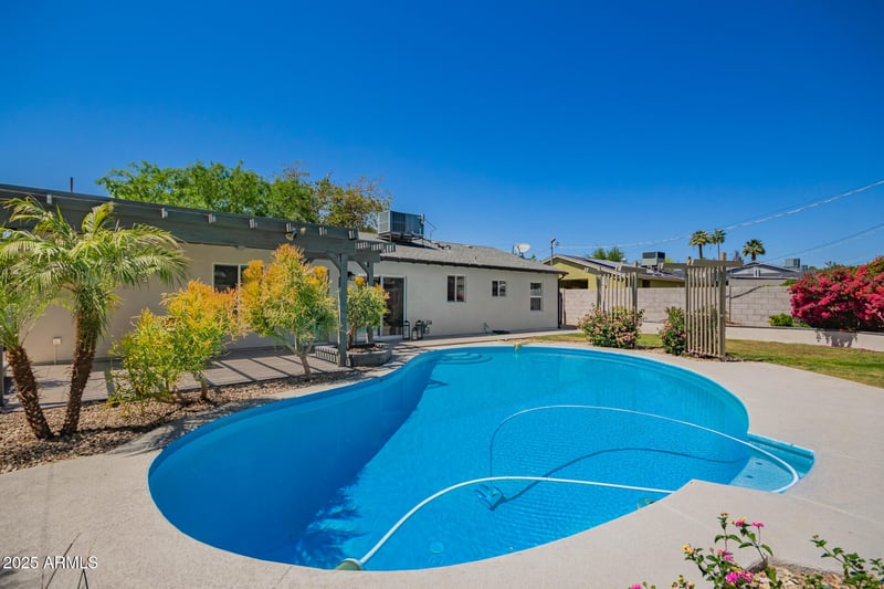 Listing details for 6741 10th St, Phoenix, AZ 85014 : ~TOP TO BOTTOM, QUALITY, PERMITTED REMODEL~CONVENIENTLY CENTRAL CORRIDOR +POOL~4 + den bedroom~2 bath~STYLISHLY updated~OPEN KITCHEN GREAT ROOM~NO HOA~NEW plumbing & electrical~Split floor plan offers FLEX bonus room off the primary bedroom perfect for expanding family, office or to create a larger living room~Kitchen offers double oven with a CONVECTION OVEN, 36 inch GAS cooktop, and a large granite kitchen island, with seating. All windows are dual paned, inside laundry off the hallway. All rooms have been wired for cable. The pergola off the primary's private exit is large enough for a jacuzzi & is just off the LARGE PRIVATE POOL. Front and back yards on watering system, as well as, trees, shrubs & pots on a drip system. Covered Courtyard & Carport, large pool, ABLE TO DO QUICK CLOSE
