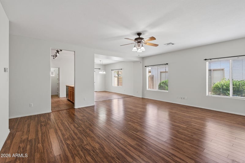 Listing details for 680 Solitude Trl, San Tan Valley, AZ 85143 : Exceptional move-in ready home in the premier Johnson Ranch community, San Tan Valley, AZ! Freshly updated and turn-key, this residence features brand-new interior paint and carpet throughout for a crisp, contemporary vibe. The highly desirable great room floor plan creates an open, airy layout with seamless flow from the kitchen to dining and living spaces--perfect for Arizona entertaining and relaxed family living. The kitchen impresses with stainless steel appliances, including a gas range, convection oven, ample counter space, and sufficient storage. The generous master suite offers a large walk-in closet and a private bath for added comfort. Enjoy recent enhancements like the newly added screened-in Arizona room--an enclosed patio ideal for bug-free year-round outdoor living, dining, or soaking in Arizona's sunny skies.