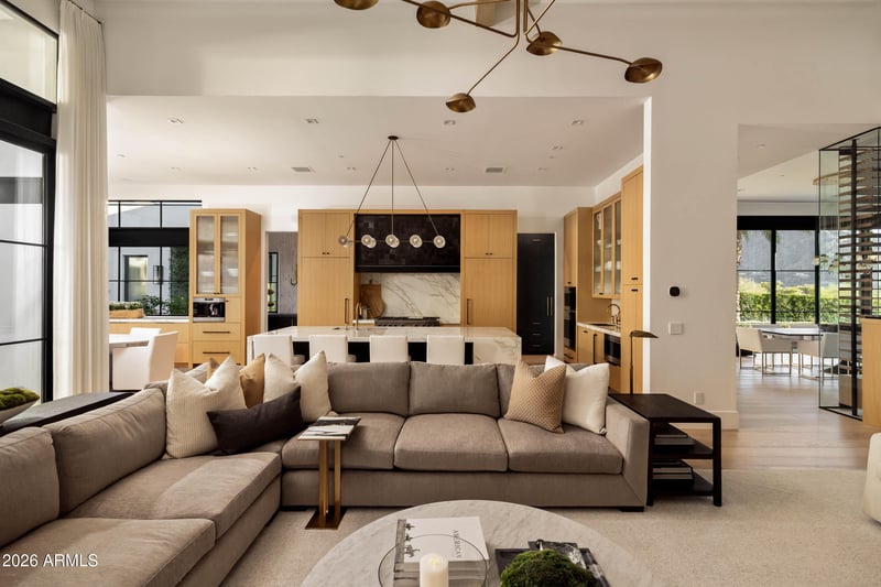 Listing details for 6800 Mummy Mountain Rd, Paradise Valley, AZ 85253 : A rare opportunity to own the builder and designers personal estate, masterfully crafted and privately gated on one of Paradise Valleys most coveted streets. Located at 6800 N Mummy Mountain Road, this extraordinary residence offers the prestige of a non-hillside zoned lot with all the advantages of elevated living, surrounded by 25M+ estates and framed by breathtaking panoramic views of Mummy Mountain and Camelback Mountain. Designed for both grand entertaining and refined everyday living, the home features an oversized climate controlled garage measuring 43' deep x 21.5' wide with 14' ceilings and a 12' tall garage door, ideal for luxury vehicles, car collections, or recreational toys. The resort-style outdoor living experience is unmatched. Enjoy a negative-edge heated pool with cascading waterfall, a swim up covered pool bar, built in outdoor kitchen, multiple seating and entertaining areas, and a view deck with fire table, all perfectly positioned to capture dramatic mountain views and sunsets. Mature landscaping and private gates create a serene, secluded atmosphere. Inside the estate offers every luxury imaginable: a private theater room, game room, fully equipped exercise room, two custom bars, and a stunning 1500 bottle temperature controlled wine wall. The primary suite is a true retreat, complete with his and her triple hung closets. A detached two bedroom guest house provides exceptional accommodations for guests or extended family. Built by J.M. Wall Development, with over 25 years of excellence, the home is equipped with a crestron lighting system, full camera security system, and comes fully appointed with all audio/video equipment, TVs, custom draperies, and automated crestron shades, offering true turnkey luxury. Just a short walk to the iconic Camelback Inn for coffee or dinner and only a block from PVCC, this estate combines an unbeatable location with world-class amenities. Truly nothing else like it, a once in a lifetime opportunity to own a landmark property in Paradise Valleys most exclusive enclave.