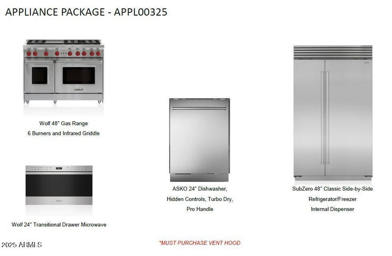 Listing details for 6811 Dale Ln, Scottsdale, AZ 85266 : Choose Your Own Options! Spec-home to be constructed. This luxury home features an Iron entry door, Island kitchen with Wolf/Subzero appliance package- 48'' gas range, micro drawer and built-in 48'' refrigerator. Property includes a paver driveway, oversized three-car tandem garage, and 49' RV garage, ideal for car collectors and RV enthusiasts. The plan includes four bedrooms plus an office, 4.5 bathrooms, a grand guest suite with its own living area, and an upscale owner's suite with a freestanding tub, walk-through double shower, and oversized walk-in closet. Details such as 90/10 smooth contemporary wall finish, 8' doors, elevated ceilings, 2x6 ext. walls, post tension foundation, spray foam insulation exemplify upscale living. Features, Photos & options are from a completed model.