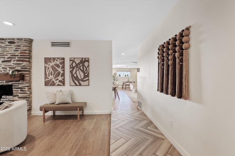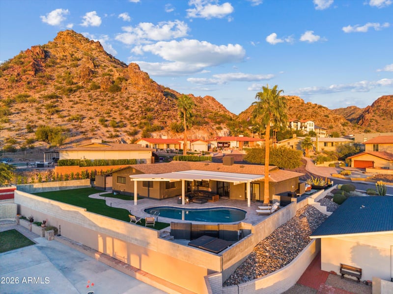 Listing details for 6832 24th Pl, Phoenix, AZ 85016 : VIEWS LIKE NO OTHER! What makes this home truly striking is its rare mountain-side lot offering breathtaking, unobstructed sunset and city views you simply cannot replicate. Set on the mountain, walk out your front door to hike Piestewa Peak, this property delivers an exceptional outdoor lifestyle with privacy, elevation, and scenery as the star. The light-filled home features a functional layout ideal for everyday living and entertaining, along with an air-conditioned garage complete with a Tesla charger. The resort style back yard includes covered patio with dual fans and are enhanced by an elaborate misting system to fully enjoy the views in comfort. The fully redesigned front and back yards include a plumbed fire pit with concealed gas lines to gas supply, a contemporary black-paver driveway, new turf surrounding the home, custom steel planter boxes, paved side paths, mature ficus landscaping, and over 2,000 square feet of expanded yard space. Interior upgrades include tile flooring, fresh interior and exterior paint, updated baseboards and door frames, added recessed lighting, a redesigned fireplace with custom walnut mantle, luxury primary bath bidet, home generator, outdoor storage, and new Samsung kitchen appliances. This home is about the lot, the views, and a lifestyle that truly stands apart.