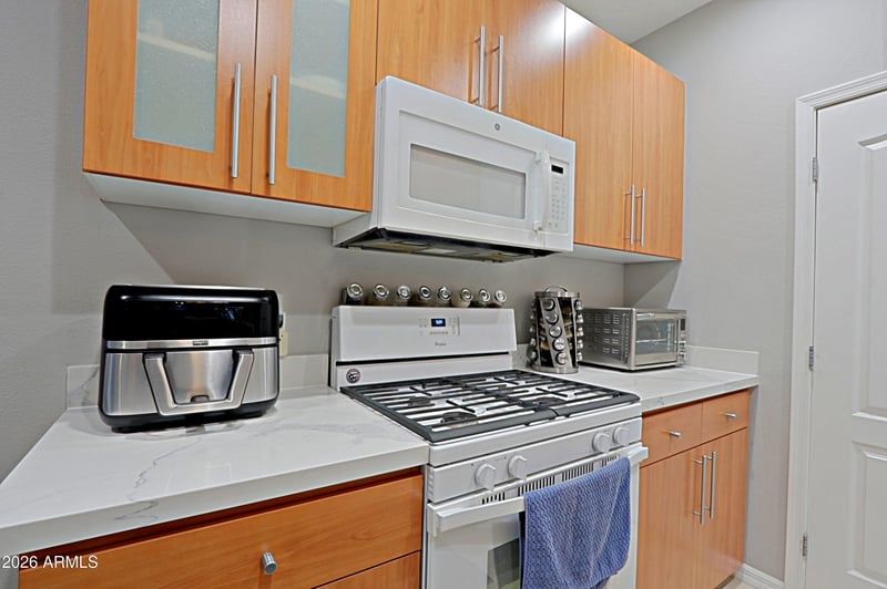 Listing details for 6900 Princess Dr #2215, Phoenix, AZ 85054 : Beautifully maintained 3-bedroom, 2-bath condo in a desirable gated Phoenix community. This light and bright home features an open-concept layout with a well-appointed kitchen offering quartz countertops, ample cabinetry, and generous counter space. The spacious primary suite provides comfort and privacy, while two additional bedrooms offer flexibility for guests or a home office. Enjoy a private balcony ideal for relaxing or entertaining. Community amenities include a heated pool and spa, fitness center, clubhouse, and more. Conveniently located near shopping, dining, and entertainment, with easy access to major roadways.