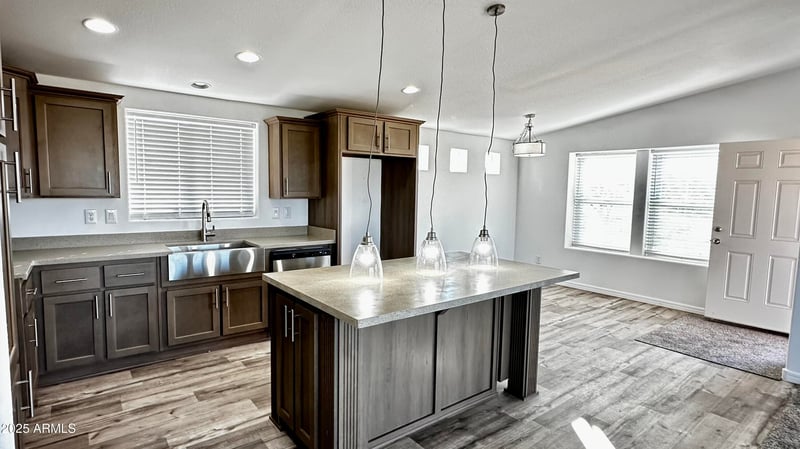 Listing details for 6925 La Burma Rd, Maricopa, AZ 85139 : NO HOA! Rural Living. MOUNTAIN VIEWS. Great opportunity to create that country living that you've always wanted. This 1,493, brand new Cavco home, has 3 bedrooms, 2 bathrooms, with an open floor plan. Beautiful kitchen cabinets with new appliances. (stove, fridge coming soon) & Corian countertops. Sit at the dining table or front porch sipping coffee, reading and looking at the mountain views. Just off the main road so quick access to get to town. Add fencing, bring your animals, horses, and enjoy your land!