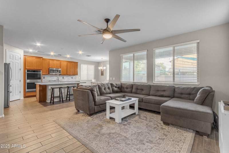 Listing details for 6943 88th Dr, Glendale, AZ 85305 : Experience the pinnacle of Arizona luxury living in this turnkey 5-bedroom masterpiece is complete with a brand-new resort-style pool, gourmet kitchen, and an unbeatable location just one mile from the Arizona Cardinals Stadium and the highly anticipated Via Resort. Spanning 2,466 sq. ft., this exceptional residence blends elegant design with modern comfort, offering 5 spacious bedrooms and 2.5 impeccably appointed bathrooms. At the heart of the home lies a stunning chef's kitchen, thoughtfully designed for both functionality and flair. From gleaming granite countertops and a double oven to a gas cooktop and rich wood-look tile flooring, every detail speaks to refined craftsmanship. The open-concept design flows effortlessly into the expansive living area, where soaring 9-foot ceilings on both levels create an atmosphere of light, space, and sophisticationperfect for entertaining guests or enjoying cozy evenings with family.