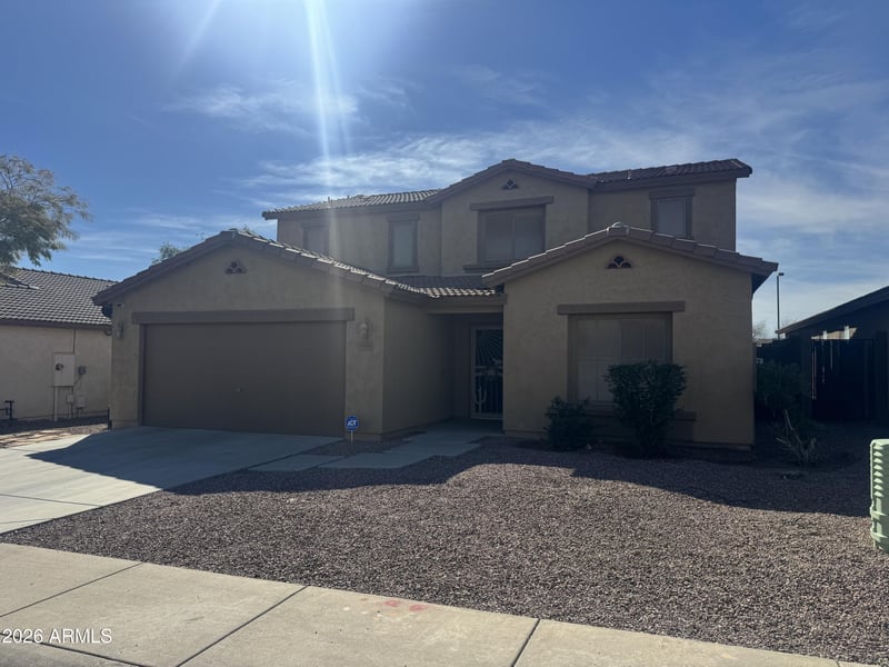 Listing details for 6944 Morning Dew Ln, Buckeye, AZ 85326 : Move-in-ready, freshly painted interior, 5-bedroom, 3-bath home with a dedicated office. Located in a quiet neighborhood near schools and a playground. Offers an open-concept layout featuring abundant natural light with connecting living, dining, and kitchen areas—perfect for entertaining. The spacious kitchen offers extensive cabinetry and storage. Enjoy outdoor living with a private Shasta Pebble Tec pool and extended covered patio with ceiling fan. The large backyard has pavers through out and extras ready for your personal touch. Recent HVAC and hot water heater replacement provides peace of mind with regards to the big ticket items. The 2-car garage provides ample storage and parking. Photos are being taken 2/19/26.