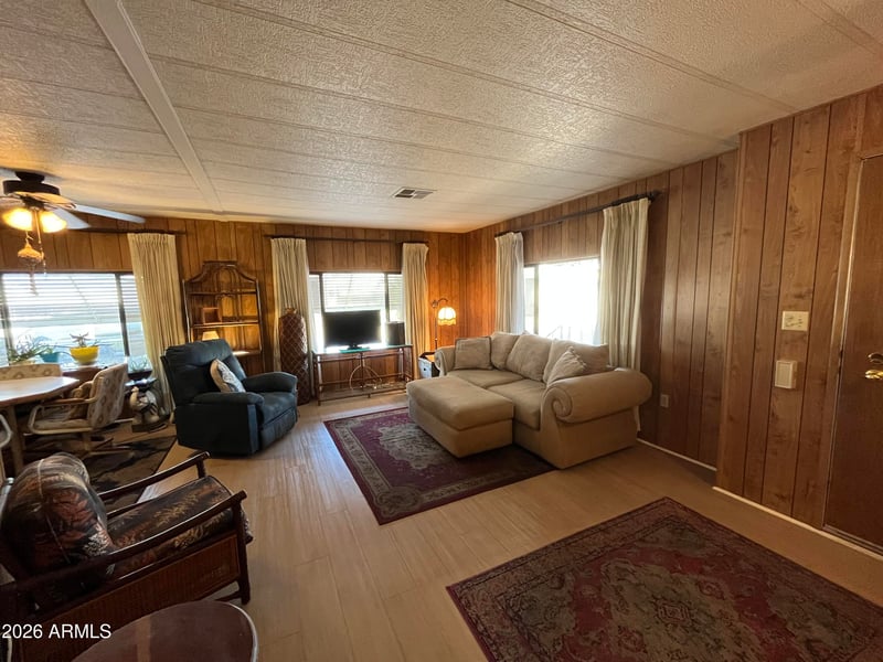 Listing details for 6960 Peoria Ave #185, Peoria, AZ 85345 : PRICED TO SELL!!! This Cozy 2B/2B home Is located In a 55+Community with pool, Fitness Center, Clubhouse,Game Room, Library and many activities! With NEW FLOORING,Screened In Patio,Large Storage Shed and Spacious Family room for entertaining, as well as Accessibility thoughtfully designed with a full entry ramp from the carport. DON'T MISS OUT ON THIS GREAT OPPORTUNITY!