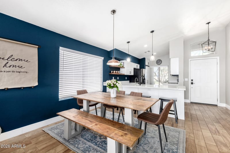Listing details for 6969 Aire Libre Ave, Peoria, AZ 85382 : If you've been looking for a perfect move-in ready home, this is it! All the work is done already, you just have to start making memories! Enter into a serene living room with vaulted ceilings, stylish tile flooring, & gorgeous kitchen that features quartz counters, crisp white cabinetry, pendant lighting, SS appliances, & a pantry. Imagine enchanting evenings in the lovely backyard, with a covered patio, pavers, pristine artificial turf, and beautifully landscaped garden for true outdoor relaxation. Just minutes away from Harkins Theater, Mariners Spring Training, 3 Fox Restaurants (Postino, North Italia, Blanco), P83 entertainment district and the 101 Hwy. AMAZING walking & biking at Skunk Creek Trail moments away! Solar Panels are OWNED, Roof was replaced in 2019. Come tour it today!