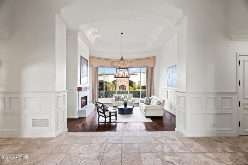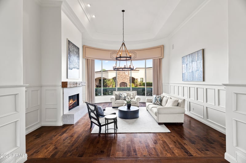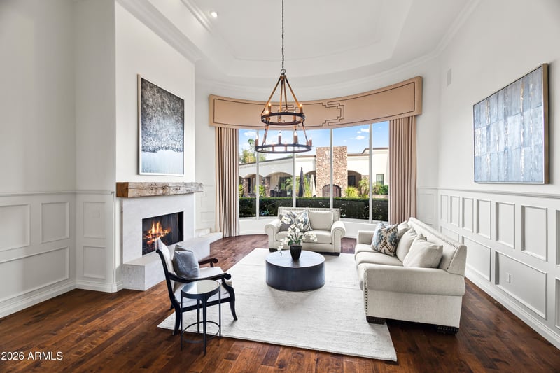 Listing details for 6991 Ironwood Dr, Paradise Valley, AZ 85253 : Gated 1-acre lot in the exclusive enclave of Ironwood at Camelback Country Club. With only nine homes in this quiet, highly sought-after Paradise Valley community, this estate offers exceptional privacy, luxury, and direct access to the 7th hole. The main residence showcases timeless architectural details including soaring ceilings, arched entryways, paneled walls, and multiple gas fireplaces. The well-designed layout features formal living and dining rooms, along with a dedicated study complete with built-in shelving. Designed for both everyday living and elevated entertaining, the open-concept family room flows seamlessly into the chef's kitchen, appointed with premium Wolf and Sub-Zero appliances, a butcher block island, breakfast nook, and walk-in pantry. The primary suite is a private retreat with direct outdoor access, a cozy sitting area with fireplace, and a spa-inspired bath featuring dual vanities, a freestanding soaking tub, oversized walk-in shower, and a custom walk-in closet with integrated laundry. The backyard is ideal for year-round entertaining, offering a heated pool and spa, multiple covered patios, an exterior fireplace, and fire pit with ample space to relax and gather. A fully equipped guest house enhances the property with its own kitchen, game room, living area, and expansive movie theater--perfect for multi-generational living or extended stays. Additional highlights include a 5-car garage and a premier location just minutes from Arizona's top resorts, fine dining, shopping, and entertainment. A rare opportunity to own a luxury golf course property in one of Paradise Valley's most intimate and desirable communities.