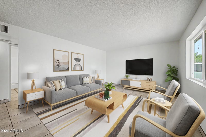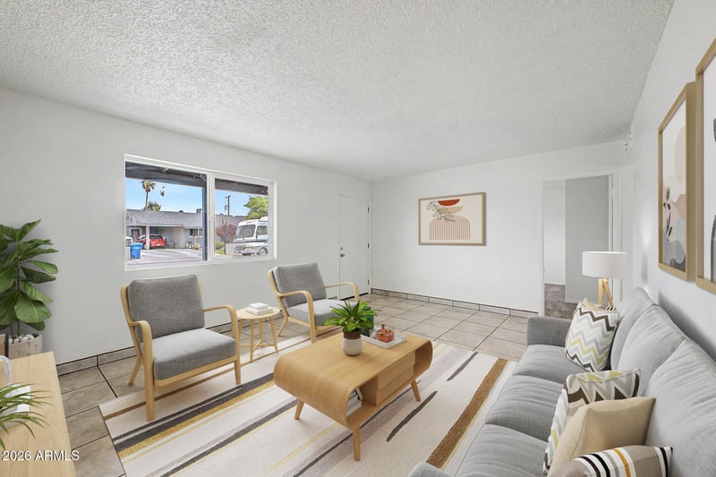 Listing details for 7007 Wolf St, Phoenix, AZ 85033 : Welcome to this tastefully updated single-level home in Phoenix! A front porch & a carport space are just the beginning. The inviting interior showcases a fresh neutral palette, tons of natural light, tile flooring in common areas, and soft carpet in bedrooms. Large formal living room, ideal for receiving guests! The updated eat-in kitchen boasts a range hood, quartz counters, gray cabinetry, a pantry, and sliding doors to the back. Featuring 2 beds & 1 bath, this home is great for anyone looking to enjoy easy and low-maintenance living. Check out the spacious backyard, offering a covered patio to relax! With your creative ideas and room for a pool, you can make it a complete outdoor living space. Conveniently located close to schools, shopping, dining, parks, & freeways. Ready to move in!