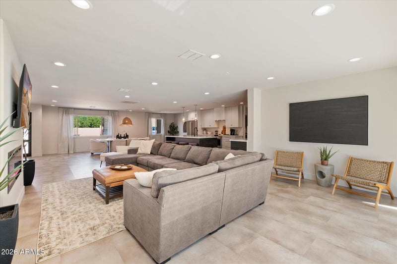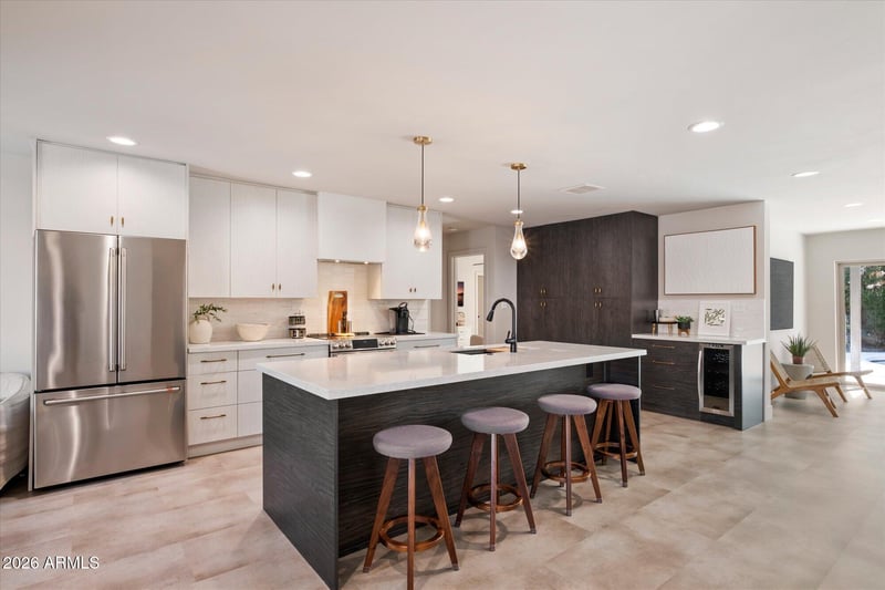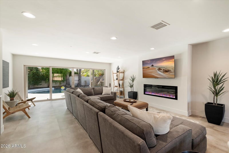 Listing details for 7027 Hearn Rd, Scottsdale, AZ 85254 : Beautifully updated 4 bed/2 bath home in the highly desired zip code of 85254 with no HOA! This open-concept great room features a split floor plan, offering both comfort and privacy. The kitchen is a standout with a large island, quartz countertops, custom cabinetry, stainless steel appliances, and wine fridge. An elegant iron front door with glass and keyless entry creates a striking first impression. A 16-ft sliding glass door in the great room, along with additional sliders in the primary and secondary bedroom, seamlessly connect indoor and outdoor living. Step outside to a beautiful backyard featuring a heated Pebble Tec pool, turf landscaping, and covered patio--perfect for entertaining or relaxing. Enjoy easy-maintenance landscaping in both the front and back yards.