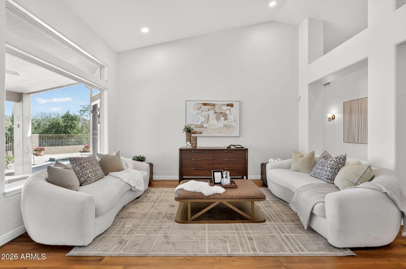 Listing details for 7030 Morning Vista Ln, Scottsdale, AZ 85266 : Stunningly updated 3-bedroom plus office/den, 2.5-bath home in North Scottsdale's sought-after Carriage Trails neighborhood! Meticulously maintained and set on a spacious .41-acre lot backing to a wash, this home offers exceptional privacy and serene desert living, complemented by tall ceilings that enhance the light and open feel throughout. The backyard is an entertainer's dream with a refinished & remodeled salt-water pool, multiple seating areas, covered patio, fire pit & built-in barbecue. Inside, the gourmet kitchen features newer appliances, a gas cooktop, & an open layout that flows seamlessly into the family & dining areas. The spacious primary suite is beautifully updated, creating a relaxing retreat. The custom office can be converted back to a 4th bedroom. Updates include: A new tankless water heater, newer AC, brand new interior paint, whole-house water filtration system, new low-E windows throughout, a security system, and new light fixtures and recessed lighting. Refinished Pebble Tec salt water pool. Close proximity to fabulous dining, shopping and hiking trails! Just move right in and relax in this beautiful home and setting!