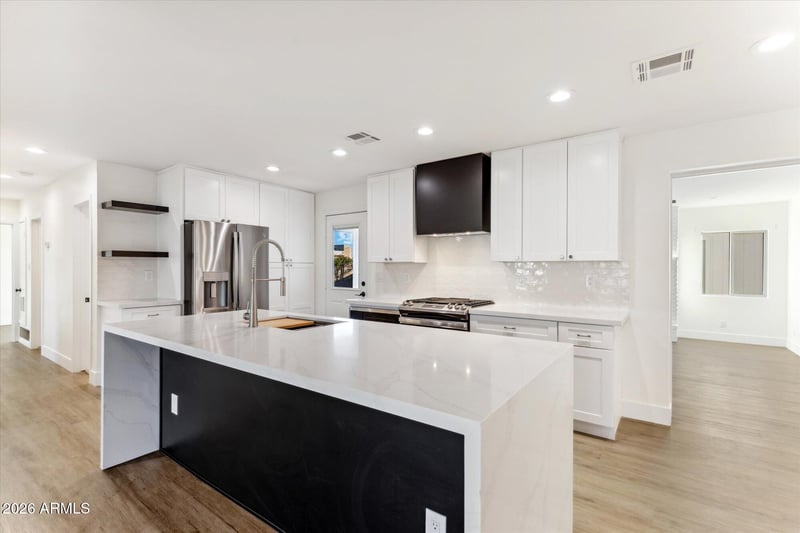 Quartz Countertops, Double Vanity, No Interior Steps and Kitchen Island