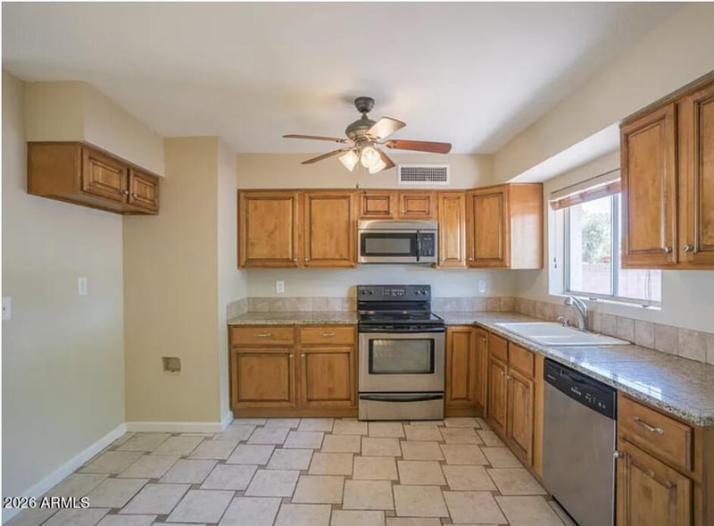 Listing details for 704 Elm St, Buckeye, AZ 85326 : Investor special. Located near historic Buckeye, this single-story home offers warm wood cabinets, granite kitchen countertops and marble countertops in the primary bath. The roof and AC are approximately 8 years old. Completely livable but needs some TLC in a few rooms and yard.