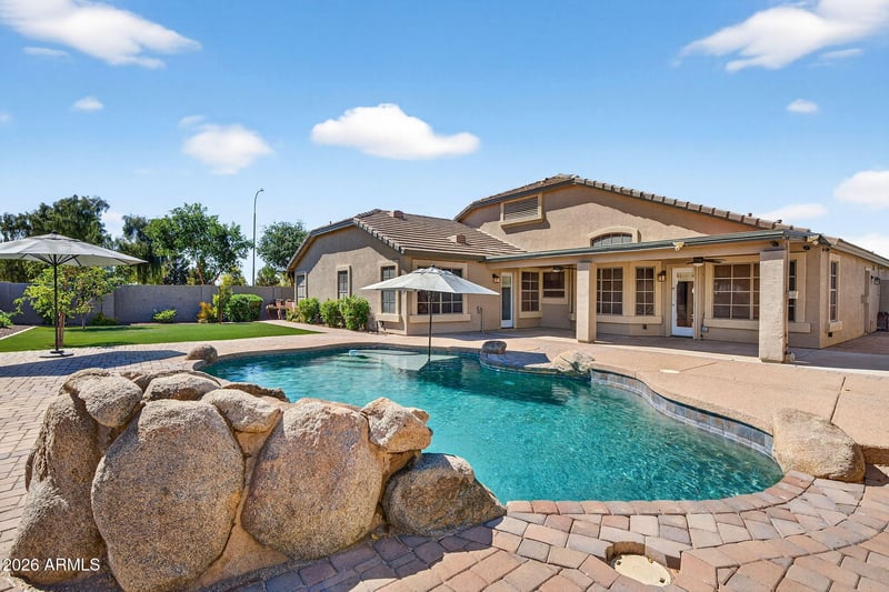 Listing details for 709 Prescott Dr, Chandler, AZ 85249 : Beautifully upgraded single-level home on a premium oversized corner lot in Kerby Estates, directly across from the Paseo Trail with miles of walking paths, parks & tree-lined greenbelts. This 4 bedroom, 2 bath home with a 3 car garage offers 2,481sf of thoughtfully reimagined living, including over $230K in upgrades since 2017. The open floorplan features wood-look tile flooring throughout, updated lighting and fixtures & a fully remodeled kitchen with custom soft-close cabinetry, Cambria quartz counters, apron sink, pot filler, KitchenAid appliances, and designer finishes. Bathrooms have been refreshed, and major system upgrades include new ductwork, water softener, reverse osmosis, and recirculating hot water system. Situated on a north/south facing 10,003sf lot, the outdoor space... ...is equally impressive with over 1,600sf of pavers, artificial turf front and back, extended driveway, mature landscaping, and a private fenced pool with water feature and variable speed pump. The home sits deep within the neighborhood, offering privacy and greenbelt views from nearly every window. Kerby Estates is known for its strong sense of community, with neighborhood events throughout the year including Easter egg hunts, movies in the park, and Friendsgiving gatherings. Located near top Chandler schools, a nearby Fry's, Target, Home Depot, Lowes, Trader Joes & Ulta for all of your shopping needs, fast casual and upscale dining from South Chandler & Downtown Ocotillo to Downtown and Chandler & Gilbert just minutes away - this home offers the perfect blend of modern upgrades, outdoor living, and connected community lifestyle.