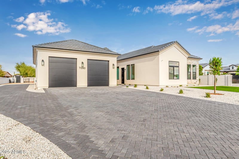 Listing details for 7090 Celestine Dr, Peoria, AZ 85383 : STUNNING New Custom Home in north Peoria! Gorgeous curb appeal, paver driveway & walkway and low maintenance front yard landscaping. Fall in love with an exquisite interior showcasing engineered hardwood flooring, dazzling light fixtures, 12 ft ceilings & multi-sliders merging the indoor with the outdoor living. Enjoy cozy nights at home by the delightful fireplace! Gourmet kitchen features stylish quartz counters & backsplash, large island, pot filler and Cafe stainless steel appliances including induction cooktop, double wall oven & built-in refrigerator! The serene master retreat features a lavish ensuite equipped with dual sinks, a superb soaking tub, a walk-in shower and large walk-in closet. The other three bedrooms all have en suite bathrooms and walk-in closets! This dream home also features a 617 sqft attached Casita featuring its own living room, bedroom, bathroom and kitchenette. Casita has access through main house as well as its own separate entrance. Garage is oversized 3-car tandem garage with extended height doors and epoxy flooring. Discover the amazing backyard offering a large covered patio, travertine pavers, a self-cleaning saltwater system swimming pool with a spa and pool bathroom! Premium oversized 29,996 sqft lot has north south exposure and backs large common area with mountain views! No HOA. Don't let this gem pass you by!!