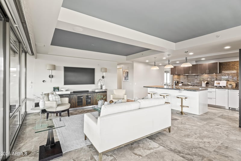 Listing details for 7131 Rancho Vista Dr #7011, Scottsdale, AZ 85251 : Experience resort-style living in the prestigious Optima Camelview. This community offers privacy with gated entry and an on-site guard and world-class amenities - including multiple indoor and outdoor pools, pickleball courts, dog park, fitness and wellness center, putting green, and grand courtyard with lush landscaping. This penthouse unit features breathtaking Camelback Mountain views. Open concept kitchen, living and dining with upgrades to include double ovens, a wine cooler, and built-in blinds across the multiple walls of windows providing natural light throughout the home. Unit includes 2 terraces and primary suite with dual vanities, oversized shower, freestanding bathtub, and walk-in closet. Located in the heart of Scottsdale, just minutes from Arizona's premier resorts, golf courses, fine dining, and upscale shopping.