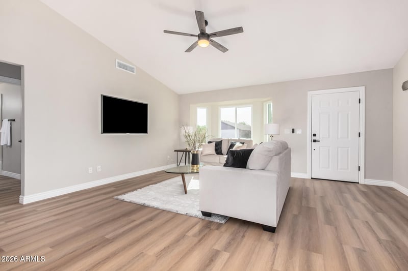 Listing details for 7144 Gary St, Mesa, AZ 85207 : **$10,000 credit to buyers to help buy down rate w/ a full asking offer!** Fall in love the moment you arrive at this gorgeous home! Designed for effortless living with fresh paint throughout, vaulted ceilings, new wood-look flooring, new windows throughout, and a bright, welcoming living room set the tone. The kitchen shines with new stainless steel appliances, crisp white cabinetry, chic quartz counters, and a convenient breakfast bar perfect for everyday meals or casual entertaining. The main bedroom offers a relaxing escape with a private bathroom featuring dual sinks and a glass-enclosed shower. Outside, unwind under the covered patio and enjoy a spacious backyard with room for a pool or lively barbecues. Come start creating lasting memories in this dream home!