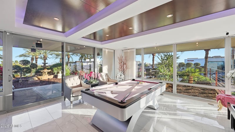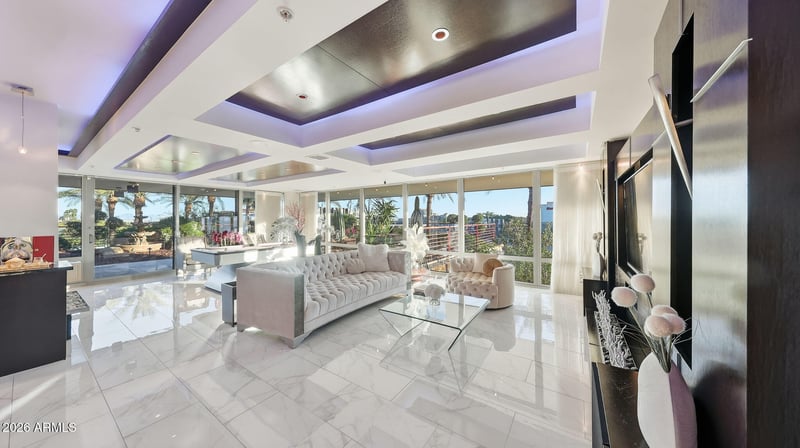 Listing details for 7157 Rancho Vista Dr #3006, Scottsdale, AZ 85251 : Optima Camelview's Premier Garden Terrace End-Unit Unit 3006. THE BEST BUY at Optima Camelview. This luxurious end-unit residence pairs refined interior finishes with an extended, penthouse-style private garden terrace, one of the largest in the community, capturing unobstructed south/southeast views and a true indoor-outdoor Scottsdale lifestyle. Inside, every detail is thoughtfully curated for sophistication and comfort: sleek white Italian flooring, dramatic triple coffered ceilings, custom cabinetry and fixtures, low-voltage lighting, and a gourmet chef's kitchen designed for both everyday living and effortless entertaining. The primary bathroom is a standout showpiece, delivering spa-level design and craftsmanship. This 3-bedroom home includes 2 parking spaces and a storage unit. Optima Camelview Village is LEED-certified and recognized by the American Institute of Architects as one of the Top 18 Architectural Achievements in Arizona. Residents enjoy a tranquil botanical setting with lush greenery and calming water features, along with exceptional amenities: two outdoor pools, an indoor lap pool, spas, steam rooms and saunas, indoor basketball and racquetball courts, putting green, pickleball, a state-of-the-art fitness center, and full-time concierge services. Perfectly positioned in central Scottsdale, you'll be just a short stroll from Scottsdale Fashion Square, top-tier restaurants and upscale shopping, and within easy reach of the airport. Or take your time exploring the charm and energy of Old Town Scottsdale. Experience Unit 3006 in person, walk the expansive private garden terrace, take in the panoramic views, and feel the elevated Optima lifestyle firsthand.
