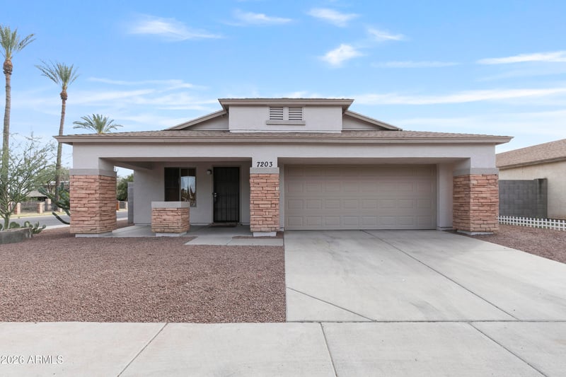 Listing details for 7203 2nd Ln, Phoenix, AZ 85041 : Turn-key, ready for your Buyers to move in. 3bedrooms, 2baths, 2Car Garage. All new flooring, tile that looks like wood planks, new carpet in the bedrooms. New toilets, new disposal, fresh paint inside and out. New smoke alarms, new outlets, washer and dryer hook up inside. Ceiling fans throughout for energy efficiency. Great storage in the kitchen. Corner lot. Walking distance to the light rail. This home is clean and shows well.