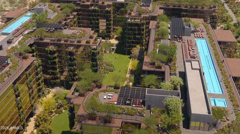 Listing details for 7230 Mayo Blvd #3023, Scottsdale, AZ 85255 : Now Selling: Optima McDowell Mountain, North Scottsdale's newest luxury condominium community, delivering Spring/Summer 2027. This 3rd-floor residence features a 2-bedroom, 2-bath floor plan with approx. 1,621 SF of interior living and 179 SF of private outdoor space. Northwest-facing with serene courtyard views and soft natural light. Interiors include floor-to-ceiling windows, designer kitchens with JennAir or Wolf/Sub-Zero appliances, and private terraces with signature vertical gardens. Amenities include rooftop pool, spa, fitness center, pickleball, golf simulator, and more. Ideally located near Whole Foods, Buck & Rider, and Loop 101.