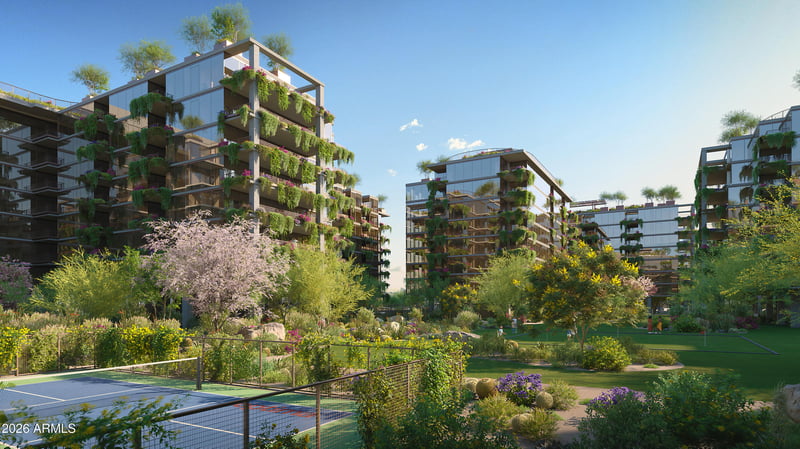 Listing details for 7230 Mayo Blvd #6018, Scottsdale, AZ 85255 : Now Selling: Optima McDowell Mountain, a new luxury condo community in North Scottsdale delivering Spring/Summer 2027. Set on 22 acres with 75% open space, it features six 8-story buildings and a 10-acre park with a walking path and putting green. One-, two-, and three-bedroom homes (729-2,218 SF) offer floor-to-ceiling windows, high-end appliances, and private terraces with vertical gardens. Enjoy resort-style amenities and walk to Whole Foods, Buck & Rider, shops, and more. Live the modern desert lifestyle. Spanning 3,237 square feet, this 3-bedroom, 3.5-bathroom residence is thoughtfully designed for those who appreciate refined living, architectural integrity, and a seamless connection to the surrounding landscape. Among the Signature Collection, this is the only residence of its kind.